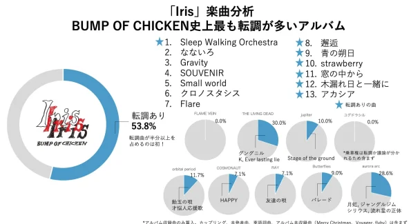 BUMP OF CHICKENにおけるアルバム別転調曲の比率